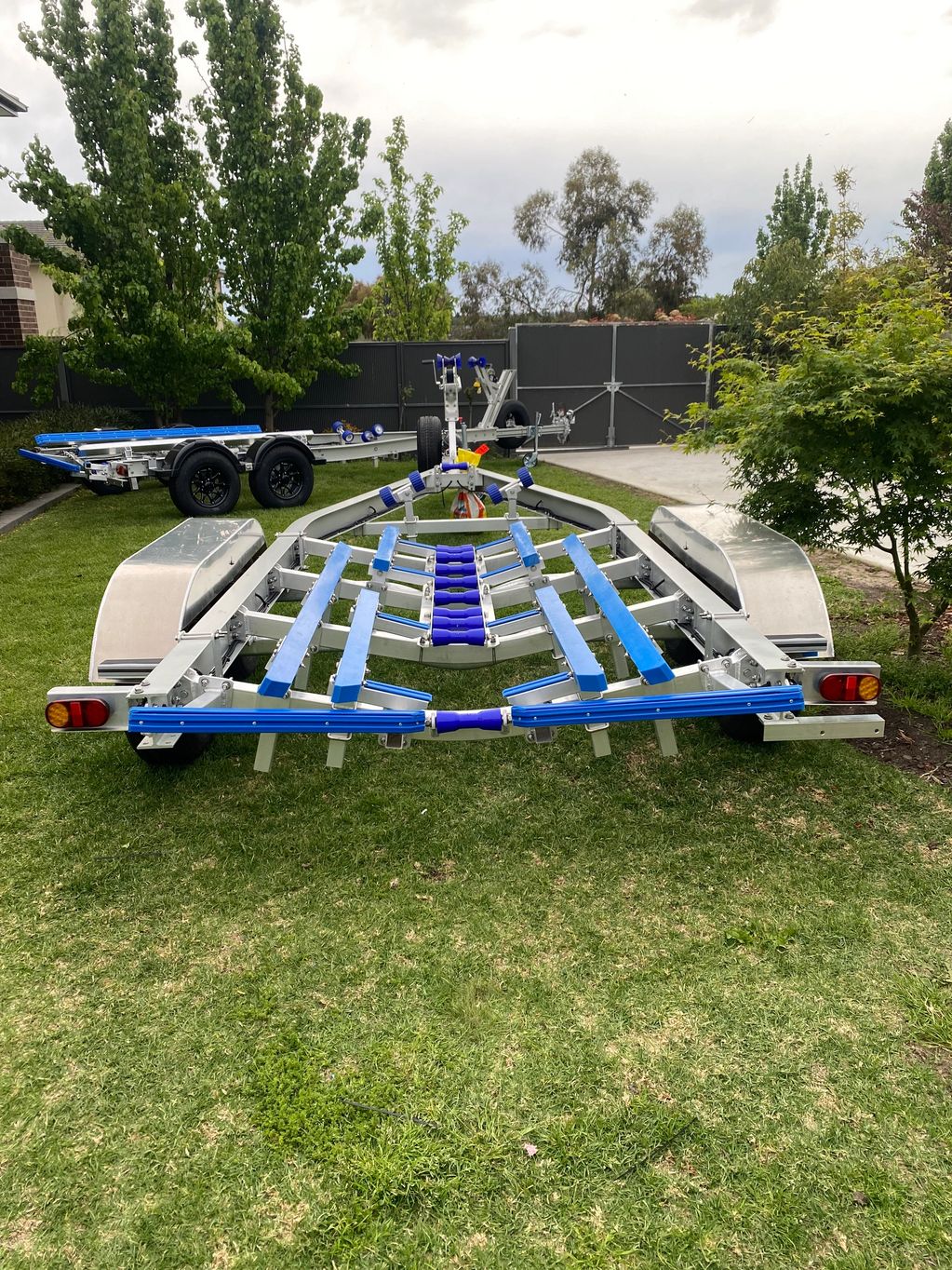 WP2022 - Alloy dual axle trailer suits boats 6m to 6.5m. Torsion axle (no springs) Stainless steel components with keel roller and skids. Welded aluminium wheel hubs.